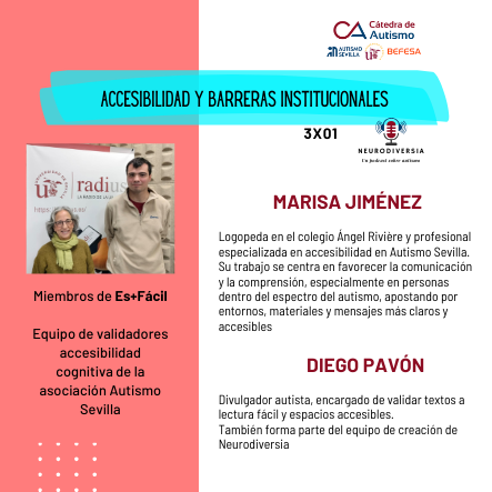 Ya está disponible un nuevo episodio de Neurodiversia, el podcast sobre autismo de la Cátedra de Autismo de la Universidad de Sevilla, realizado por personas autistas. En este episodio hablamos de accesibilidad y barreras institucionales en el autismo, con la participación del equipo de validadores Es+Fácil, que comparte su experiencia haciendo la información más clara […]