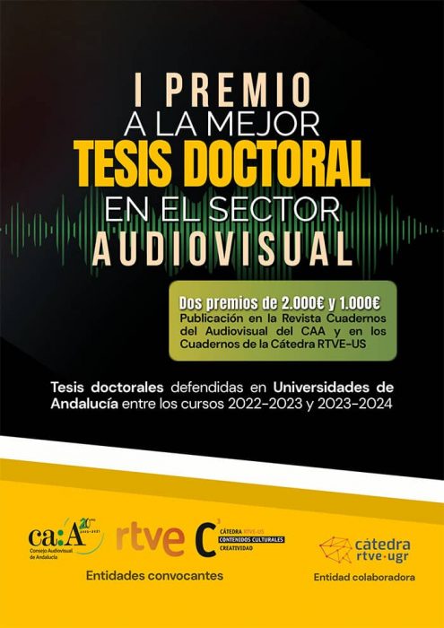 La convocatoria, que busca fomentar la investigación en torno a los medios audiovisuales y digitales en el ámbito andaluz, estará abierta durante los meses de junio y julio y se fallará antes de final de año. El ganador tendrá un premio de 2000 euros y el finalista de 1000, además de la publicación parcial del trabajo en la Revista Cuadernos del Audiovisual de CAA o los Cuadernos de la Cátedra RTVE-US (Editorial de la Universidad de Sevilla).