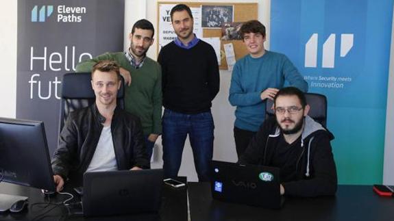 El equipo de innovación de Eleven Paths (Telefónica) de la sede de Málaga, liderado por Sergio de los Santos (sentado a la derecha)