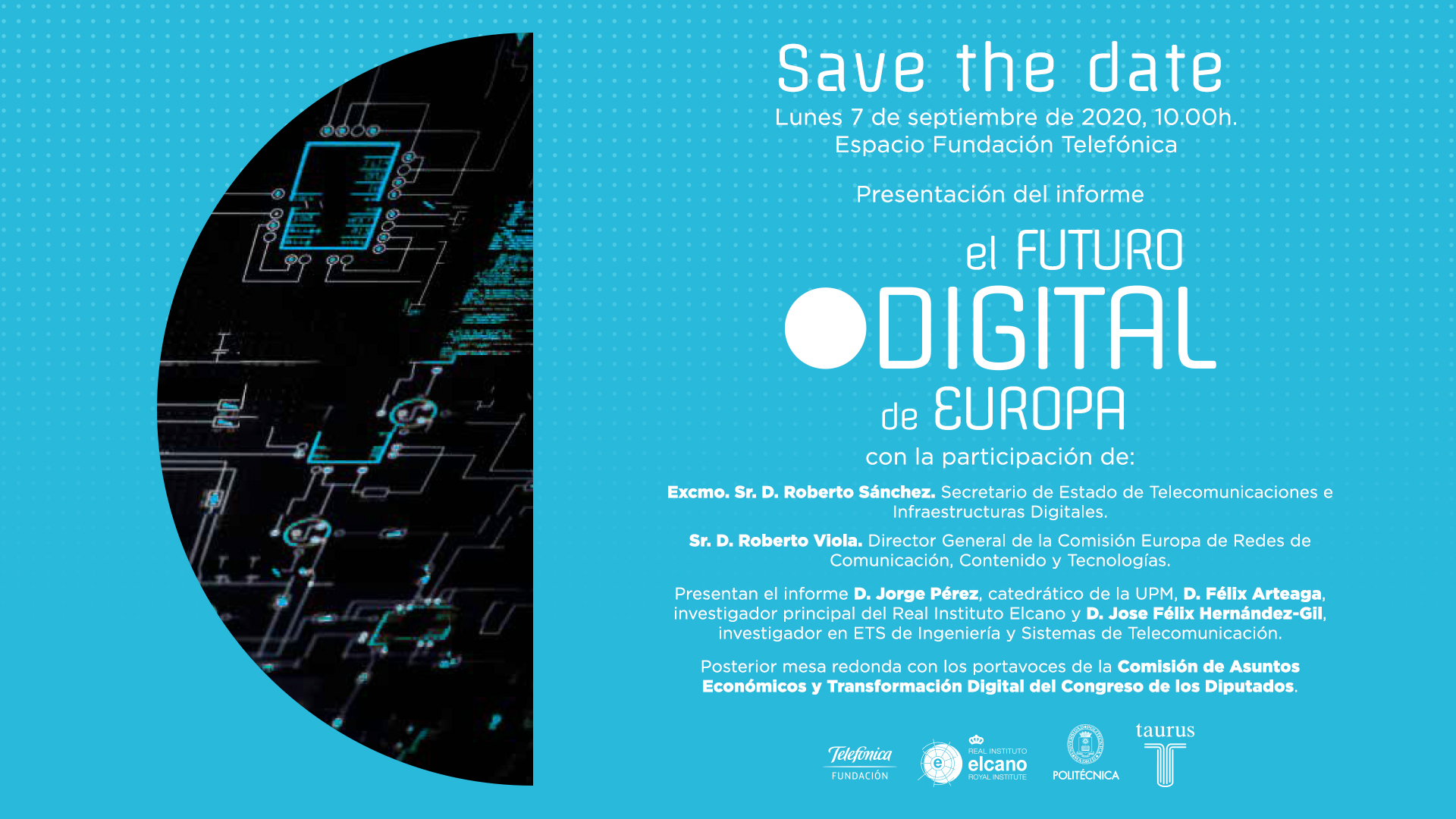 El evento contará con la participación del Excmo. Sr. D. Roberto Sánchez, Secretario de Estado de Telecomunicaciones e Infraestructuras Digitales, y Sr. D. Roberto Viola, Director General de la Comisión Europea de Redes de Comunicación, Contenido y Tecnologías.