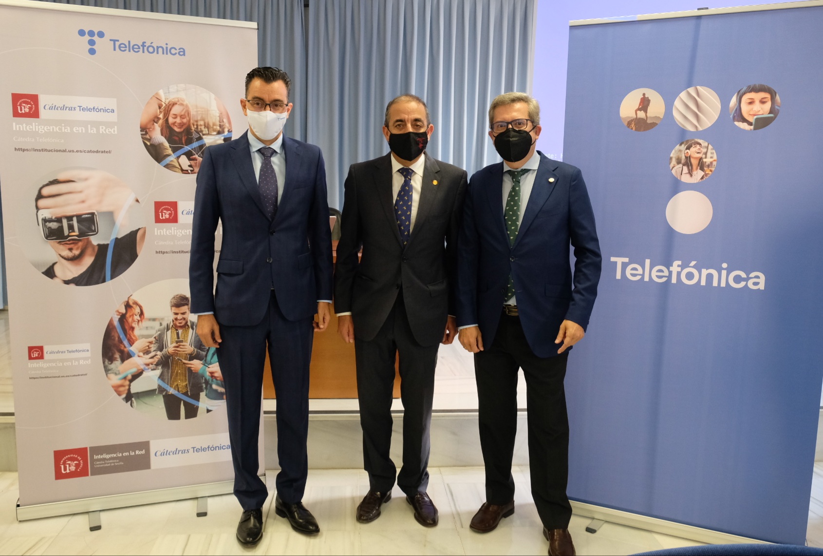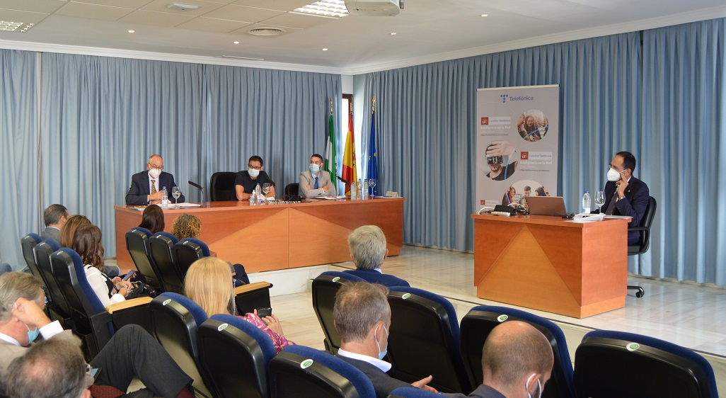 El evento ha estado presidido por D. Miguel Ángel Castro, Rector Magnífico de la Universidad de Sevilla, por D. Joaquín Segovia Alonso, Director Territorial Sur de Telefónica, y por D. Carlos León de Mora, director de la Cátedra Telefónica de la Universidad de Sevilla.