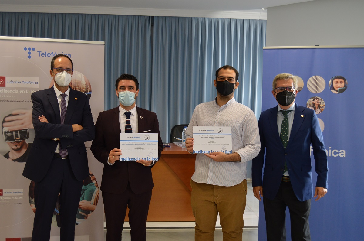 Mientras que el Premio Cátedra Telefónica 2019-20 al Trabajo Fin de Máster del Máster en Sistemas Inteligentes en Energía y Transporte ha tenido un primer premio y dos accésit. El Primer Premio, dotado con 1000 euros, ha sido para D. Luis Manuel García-Baquero Corredera por el TFM titulado: “Diseño e implementación de algoritmos para el problema de optimización de viajes compartidos”. Uno de los accésit, dotado con 300 euros, ha sido para D. Andrés Antonio Arias Silva por el TFM titulado: “Desagregación de la demanda usando Non-Intrusive Load Monitoring Toolkit (NILMTK)”. El segundo accésit, dotado con 300 euros, ha sido para D. Javier Civit Masot por el TFM titulado: “Una aportación a la segmentación de imágenes de fondo de ojo utilizando redes U-net generalizadas”.